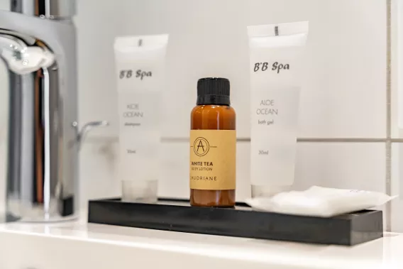 Équipements standards : WiFi, télévision à écran plat, minibar, bureau, coffre-fort, téléphone, sèche-cheveux, douche et baignoire à l'italienne