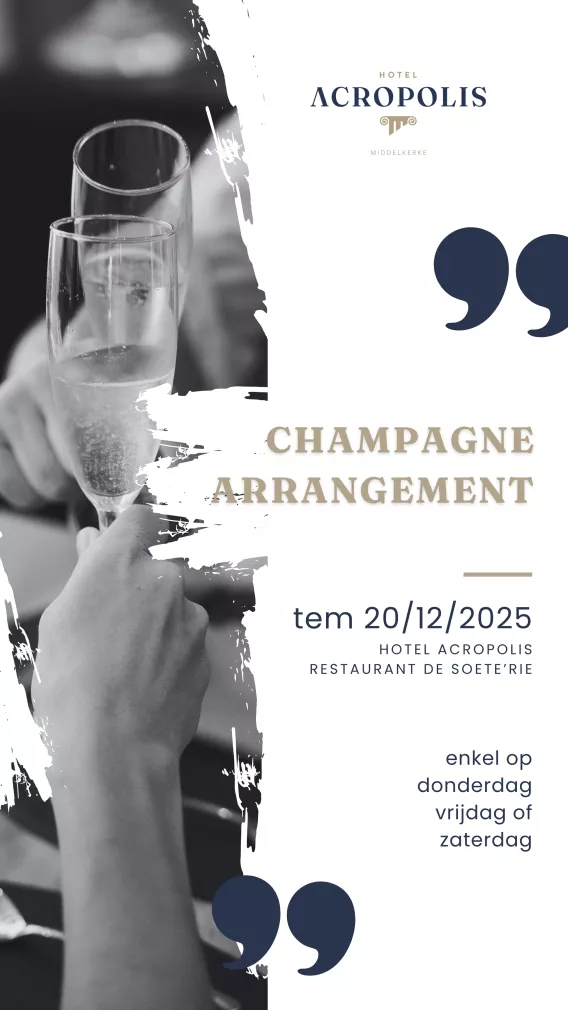 Bij Hotel Acropolis**** in Middelkerke kan je dit jaar extra lang genieten van ons Arrangement Champagne. We trekken de feestvreugde graag wat verder door en verwennen onze gasten met deze exclusieve actie tot en met Kerst.